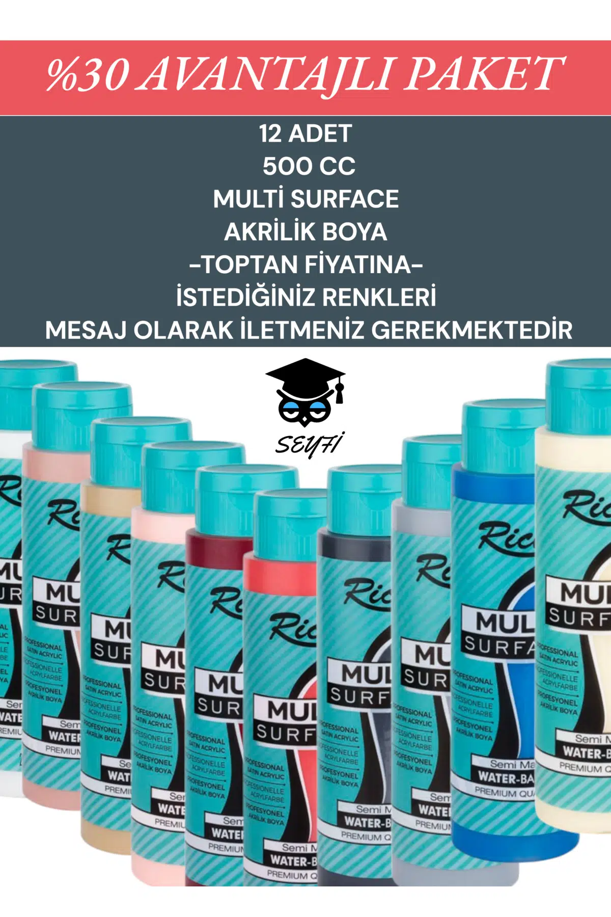 TOPTAN 12 ADET 500 CC MULTİ SURFACE AKRİLİK BOYA -TOPTAN FİYATINA- İSTEDİĞİNİZ RENKLERİ MESAJ ATINIZ