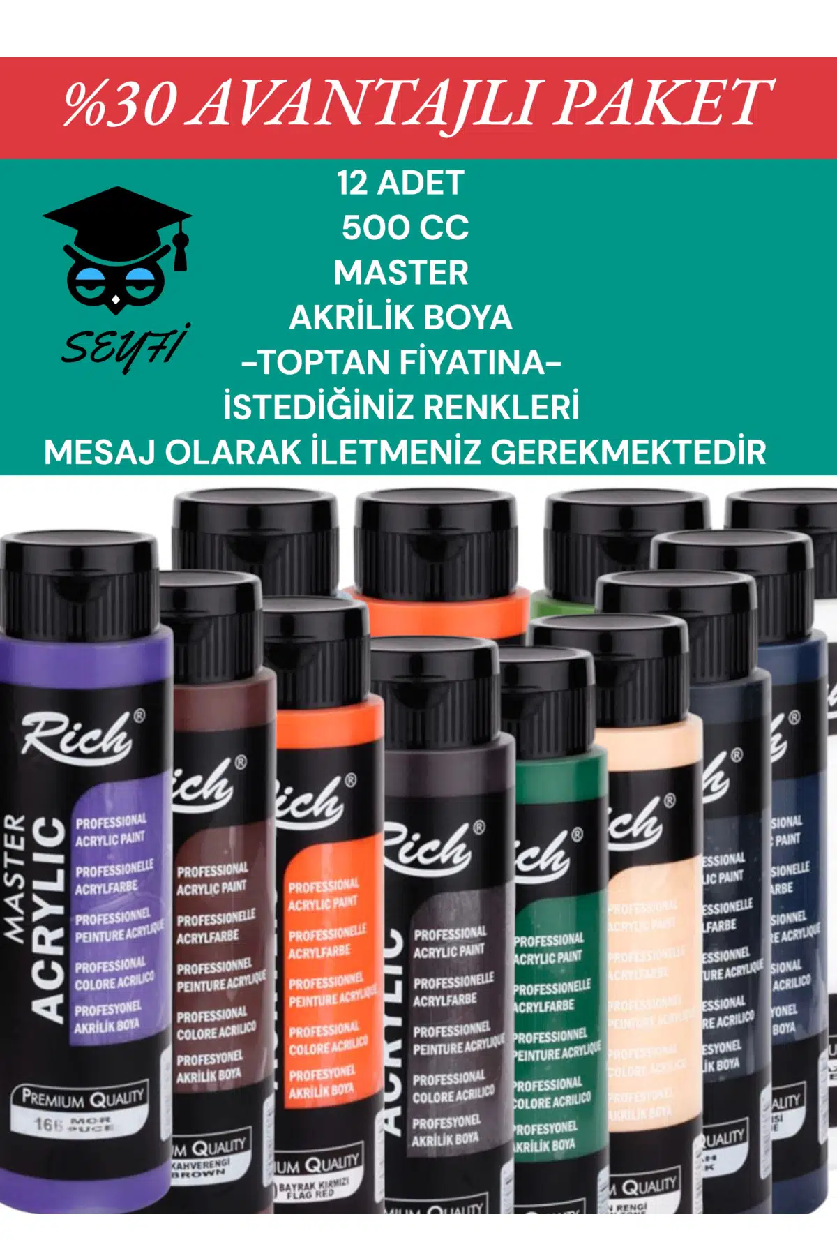 TOPTAN 12 ADET 500 CC MASTER AKRİLİK BOYA-İSTEDİĞİNİZ RENKLERİ MESAJ ATINIZ-TOPTAN FİYAT