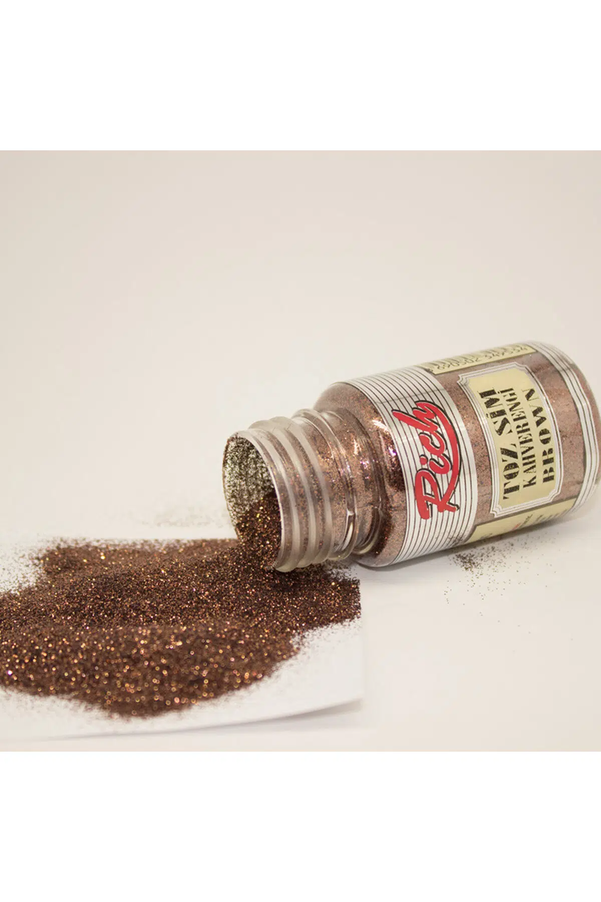 Rich Toz Sim 50 cc Kahverengi 9126 Rich Toz Simler dekoratif amaçlı kullanılır.; Rich toz simler uygulandıktan sonra kuruduğu zaman çok yüksek ışıltılı ve sedefli bir görünüme sahip olurlar.; Rich simler genel olarak ahşap boyama hobisinde oldukça fazla şekilde tercih edilen ürünlerdir.; Rich simler genel amaçlı kullanıma uygundur.; Uygulama yapmadan önce zemini ince bir zımparayla bir miktar zımparalarsanız çok daha iyi verim alırsınız.; Çoğu zaman kat atmaya gerek kalmaz.; Katlı bir boyama yapacaksanız Rich simleri son kat boyama yapmadan önce boyanıza karıştırmanız tavsiye edilir.; Uygulandıktan sonra 5-6 saat kuruma süresi vardır.; Rich toz sim ile karıştırılan boyalar kuruduktan sonra yine Rich marka vernikler ile birlikte tasarımızı koruyabilirsiniz.; Rich sim üzerinde kullanılan vernikler ince bir katman halinde sürülmelidir.; Aksi takdirde Rich simlerin yüksek ışıltılı simli görünümü bir miktar kapatmış olursunuz.; Aynı zamanda duvar boyaları gibi diğer farklı boyalar ile de rahatlıkla kullanılabilir bir üründür.; Rich Simleri boyaya katmadan da katman oluşturmak için kullanabilirsiniz.; Aynı zamanda Rich simli boyaların iz bırakmaması için ponpon fırçalar ile kullanılması tavsiye edilmektedir.; Siparişleriniz bidoluhobi tarafından özenle hazırlanır ve en kısa sürede ilgili kargo firmasına teslim edilir.