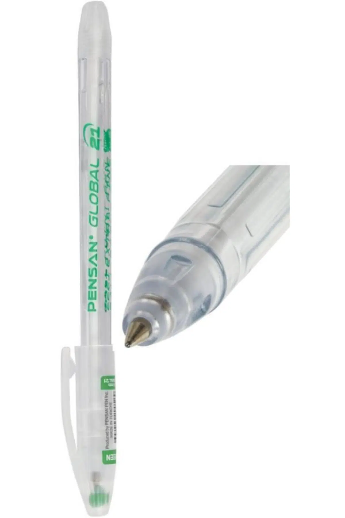 PENSAN Global 21 0.5 mm Yeşil Tükenmez Kalem 3 Adet Ürün Özellikleri Global'21 Extra Fine 0.5 mm Kaliteli İsviçre yapımı nikel-gümüş uç Mükemmel yazım ve çizim kalitesi Döküman kullanımına uygun Ekstra düşük akışkanlı mürekkep Pensan Global 21 isviçre yapımı nikel-gümüş uç ile hem kaliteli bir yazım sağlar hem de uzun süre dayanır. ; Ektra düşük akışkanlı mürekkebi ile yazılarınız dağılmaz ve daha uzun süreli dayanıklılık gösterir. ; Konforlu ve ergonomik bir tutuş için yuvarlak bir tasarıma sahiptir. ; Konfor, sadelik ve yüksek performans arayanlar için Pensan Global 21.;