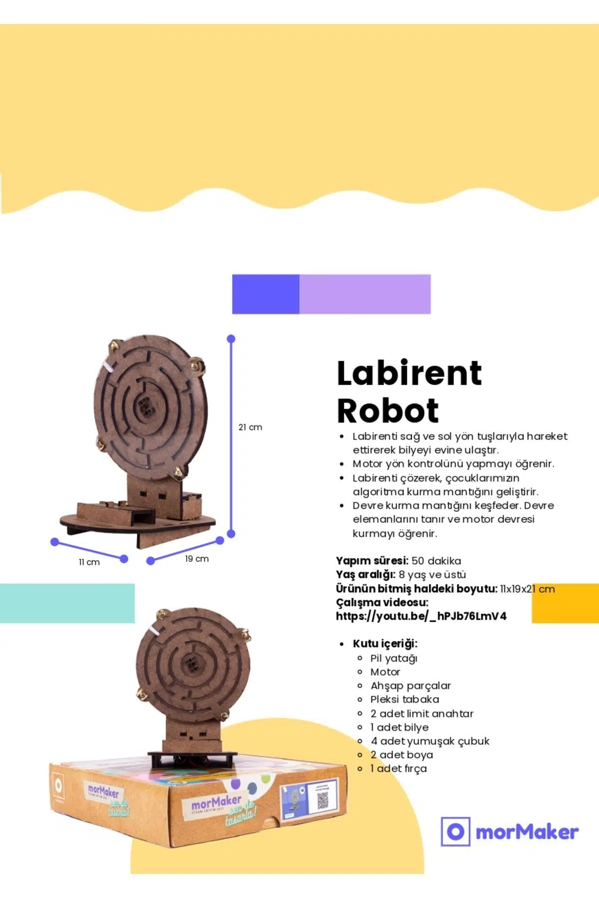 TÜRK MALI Labirent Robot DC Motorlu Ahşap Oyuncak STEM-A Set Çocuklar için Boyanabilir Maket