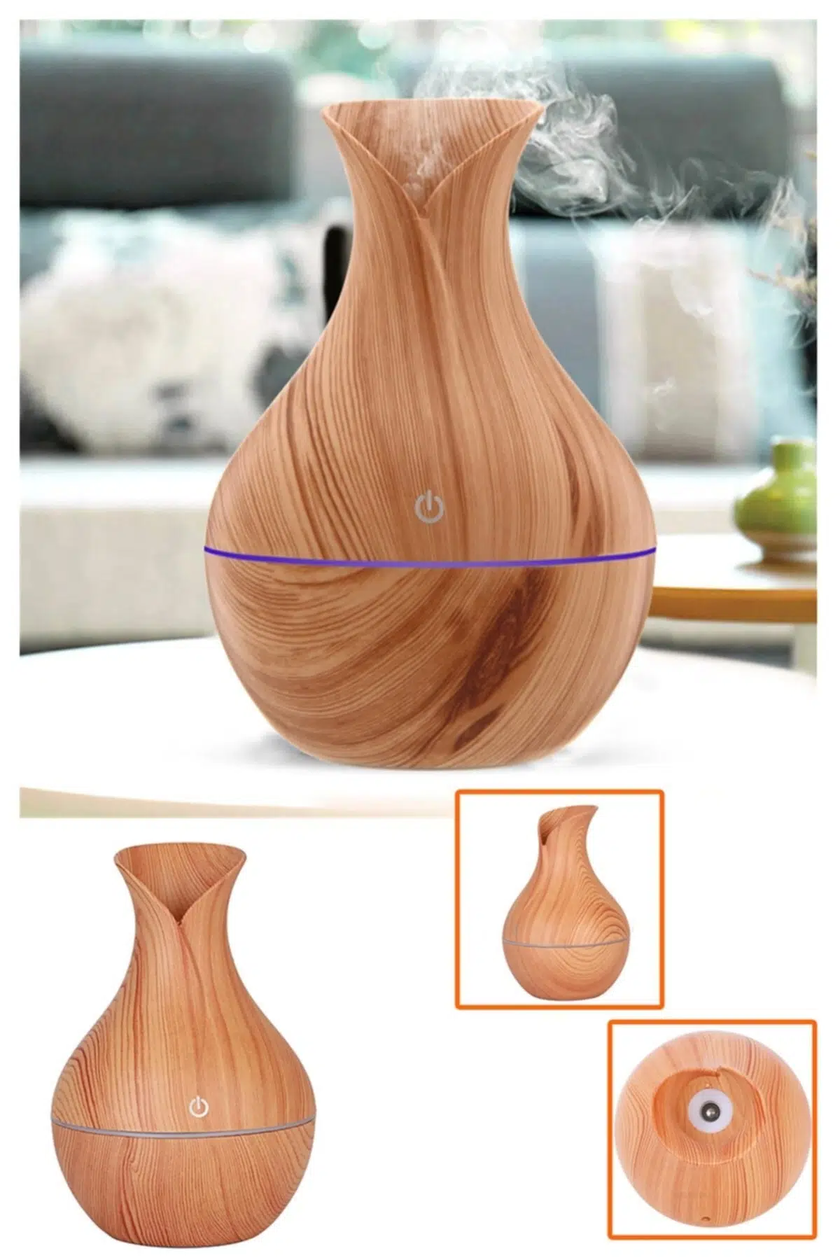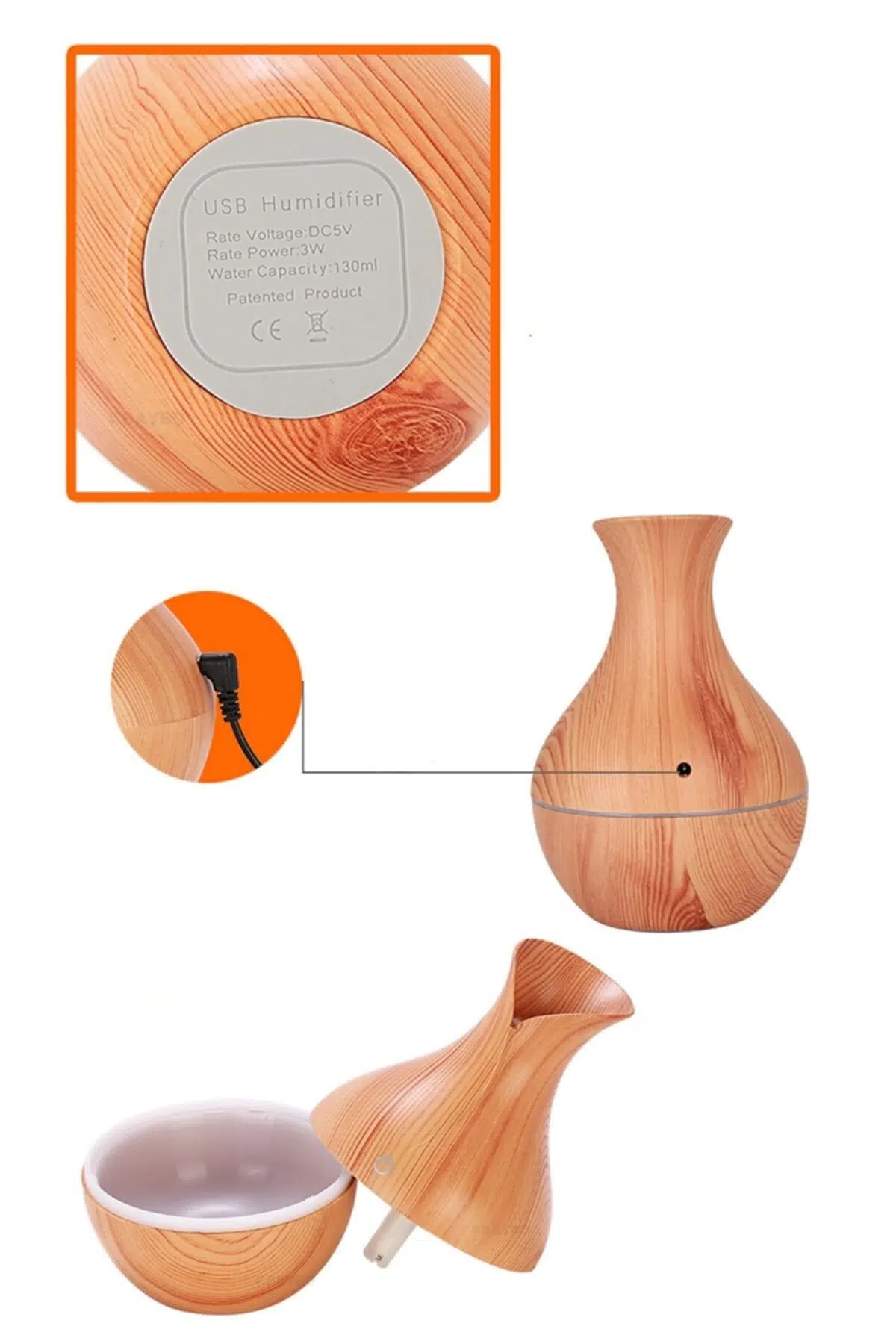 USB Bağlantı Ahşap Görünümlü Işıklı Aromalı Hava Nemlendirici Suyu mikron su moleküllerine Atomize edin, su eksik cildi besler, atmosferinizin ahengini değiştirir, havasını tazeler. Seçeceğiniz aromaterapi yağları ile atmosferinizin ahengini değiştirir. Zarif ahşap tahıl desen, sabit sprey hızı, renkli ışık ile süper sessiz çalışma modu kullanım kolaylığına sahiptir. Geceleri kuru klima odasına veda edin, uyumak için gönül rahatlığı, rahatsız etmeyecektir. Bebek odası, yatak odası, ofis, araba, yoga veya spa salonu için mükemmel bir tercihtir. Elektrikli nemlendirici aroma yağı difüzörü ultrasonik ahşap hava nemlendirici USB serin mini mist maker ışıkları ev ofis için kullanıma uygundur. Yer kaplamaz, çok şık ahşap görünümlü vazo tasarımı sahip dekoratif bir aksesuar olma özelliğine sahiptir. İki farklı renç seçeneği bulunan ahşap görünümlü vazo tasarım mini nemlendiriciyidekorasyonunuza uygun olanı tercih edebilirsiniz. Ürün Özellikleri: Işıklı (Farklı Renkler) ; Vazo Model Tasaımlı ; Sessiz Çalışma özelliği ; Tank Kapasitesi:150ml ; Giriş: AC 100V ~ 240V, 50 / 60Hz ; Çıktı:DC 5V, 300-400mA ; Güç Tüketimi: 3W ; Nemlendirme Süresi: 6 ila 12 saat ; Malzeme: ABS ; Ürün Ağırlığı: 130 gram ; Nasıl Kullanılır?: 1. Üst kapağı saat yönünün tersine açın 2. Temiz su ekleyin Not: dilerseniz aromaterapi yağlardan kullanabilirsiniz. (aromaterapi yağları pakete dahil değildir) 3. USB güç kaynağını bağlayın 4. Açma kapama tüğmesine tel tıkla basın üzerindeki sprey haznesine dokunun. Nemlendirmeye başlayacaktır. Ürün Ölçüleri: En: 9, 5 cm Boy: 15 cm Paket İçeriği: 1 Adet USB Bağlantı Ahşap Görünümlü Işıklı Aromalı Hava Nemlendirici 1 Adet USB Kablosu 1 Adet Yedek Filtre 1 Adet Kullanım Kılavuzu