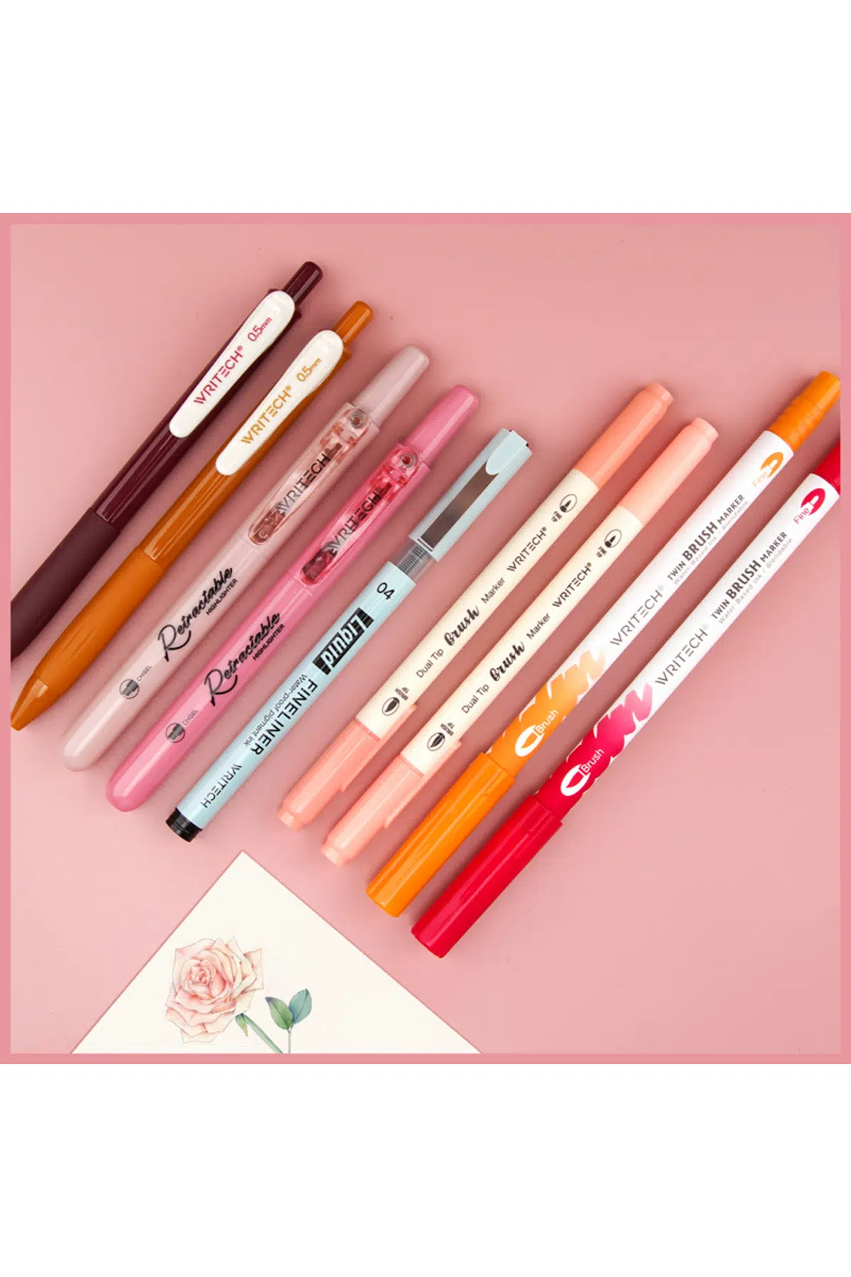 WRITECH W-JK03-3 Dusk Kalem Seti, 9'lu paket halinde sunulmaktadır ve kırmızı ile pembe tonlarının canlı renkleriyle yazı ve çizimlerinize enerji katar. Akıcı yazım sağlayan bu kalemler, günlük ve yaratıcı çalışmalar için idealdir