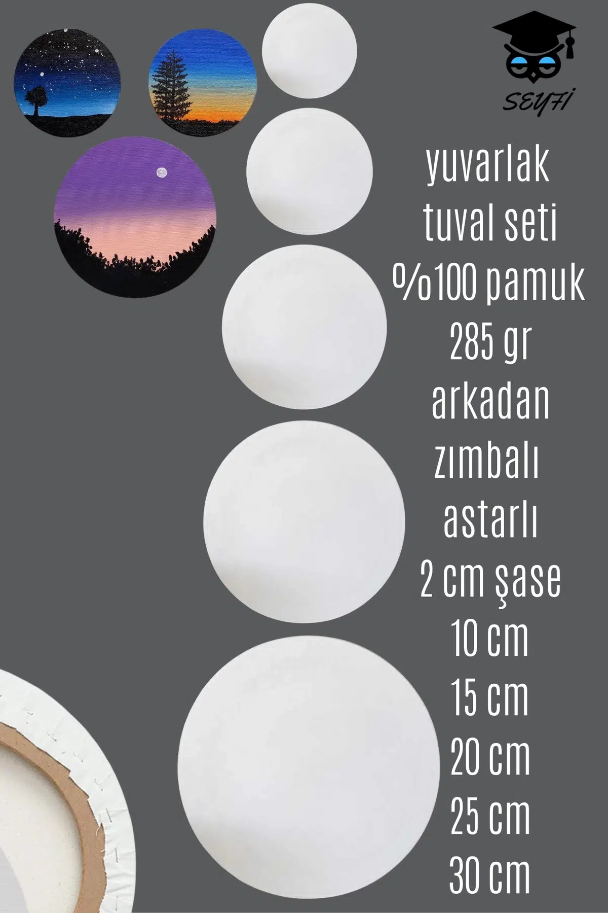 yuvarlak tuval seti %100 pamuk 285 gr arkadan zımbalı astarlı 2 cm şase 5 adet